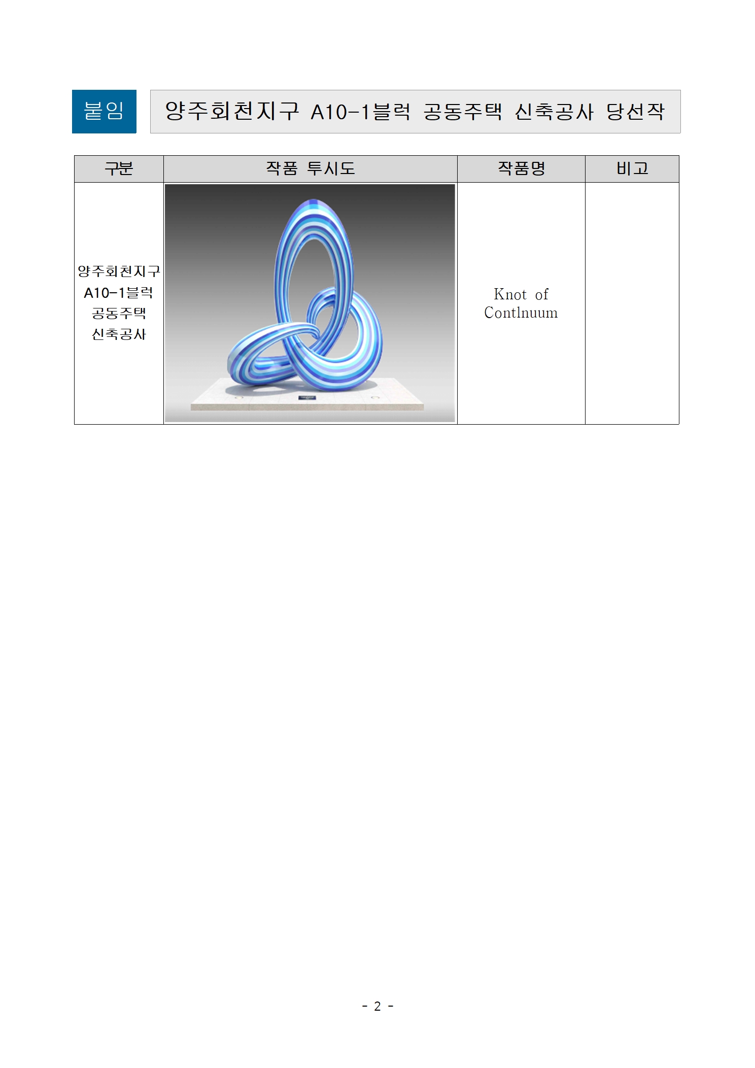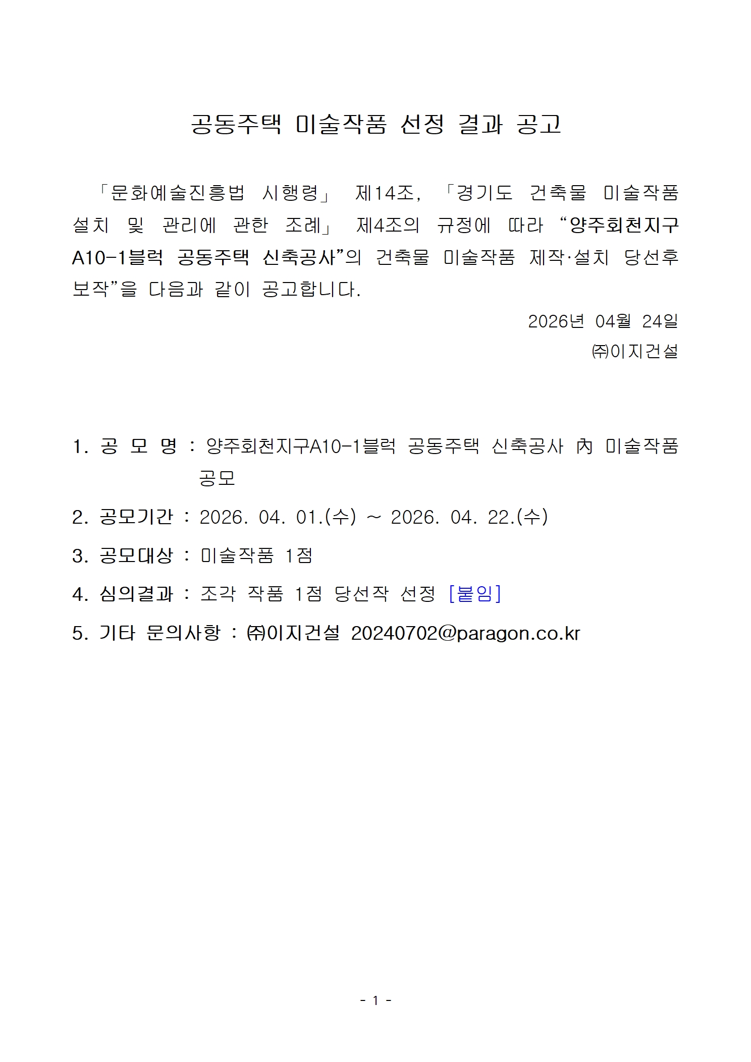 [공고안내] 양주회천지구 A10-1블럭 공동주택 신축공사 당선작 공고